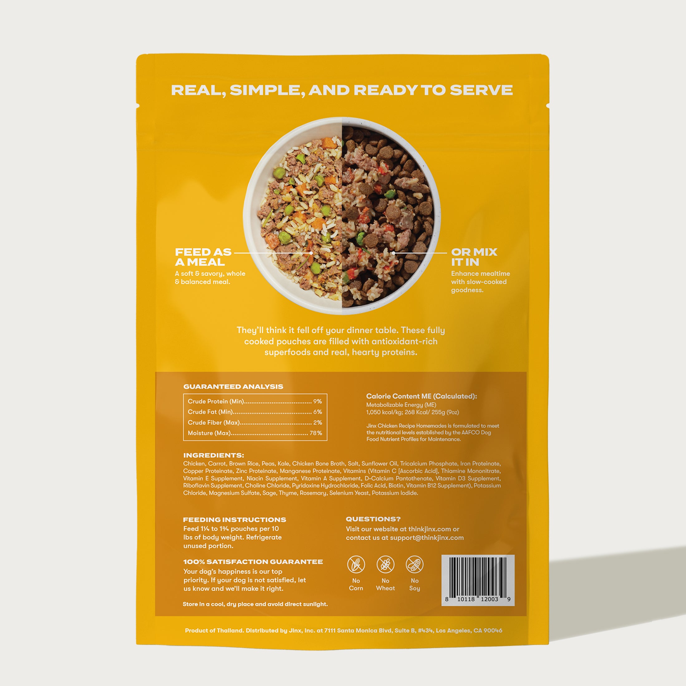 Every Jinx recipe is formulated with your dog’s health and wellness in mind. Made with whole and intentional ingredients that are easy to recognize and even easier to enjoy.