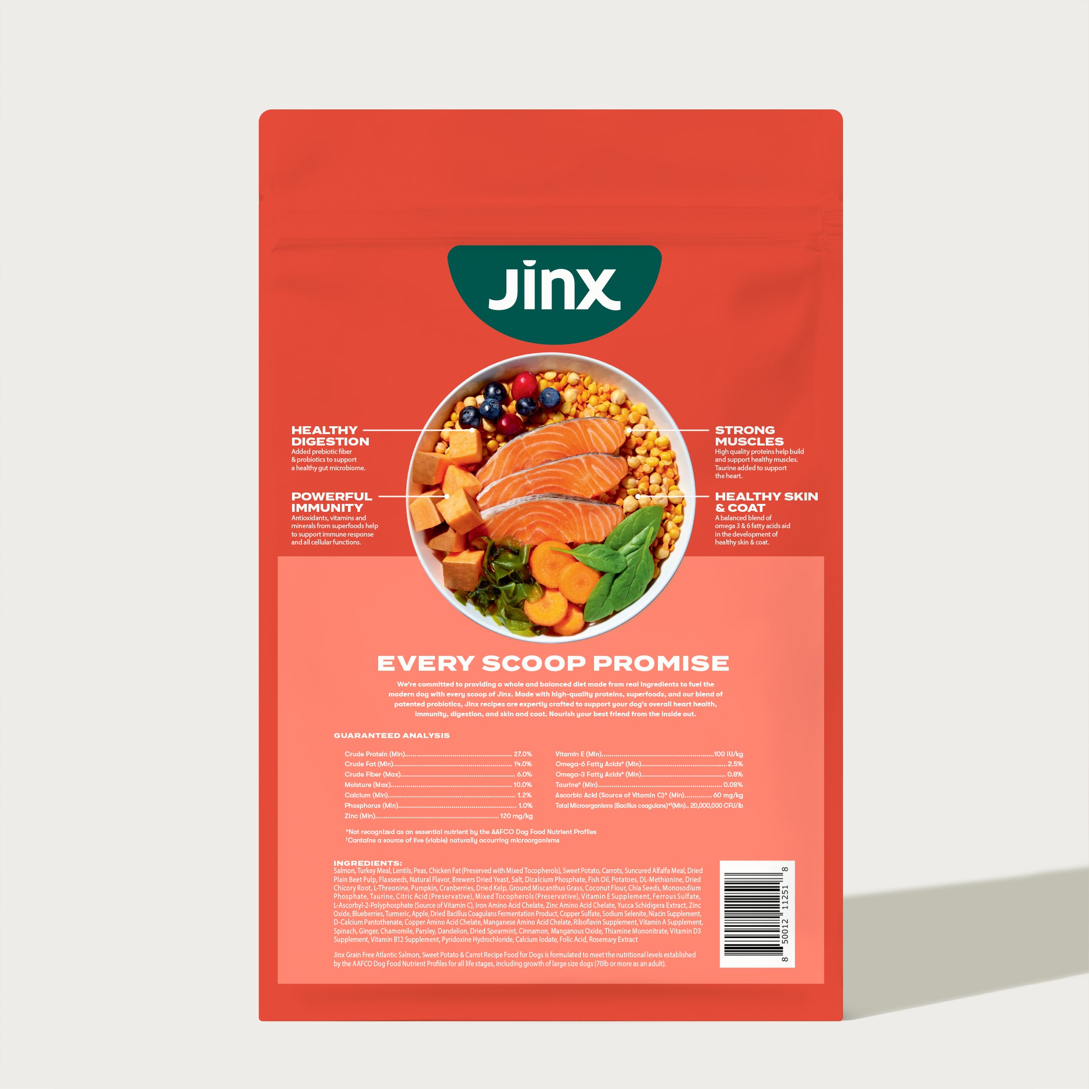 Every Jinx recipe is formulated with your dog’s health and wellness in mind. Made with whole and intentional ingredients that are easy to recognize and even easier to enjoy.
