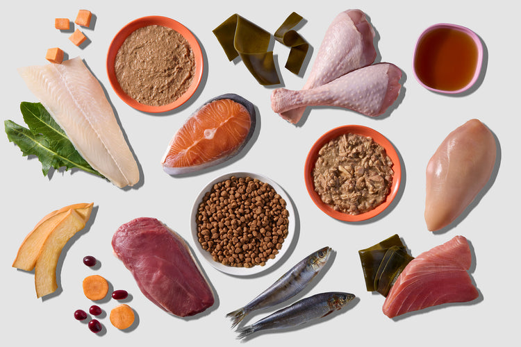 Bone Broth, Chicken, Tuna, Salmon, Sunflower Oil, Tapioca Starch, Calcium Sulfate, Natural Flavor, Guar Gum, Sodium Tripolyphosphate, Vitamins (Alpha-Tocopherol Acetate, Vitamin A Acetate, Niacin, Thiamine Mononitrate, Calcium Pantothenate, Cholecalciferol, Riboflavin, Pyridoxine Hydrochloride, Biotin, Vitamin B12 Supplement, Folic Acid, Menadione Sodium Bisulfite), Potassium Chloride, Salt, Choline Chloride, Magnesium Sulfate, Minerals (Iron Glycine Complex, Zinc Glycine Complex, Manganese Glycine Complex, Copper Glycine Complex, Sodium Selenite, Potassium Iodide), Taurine.